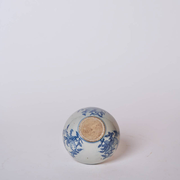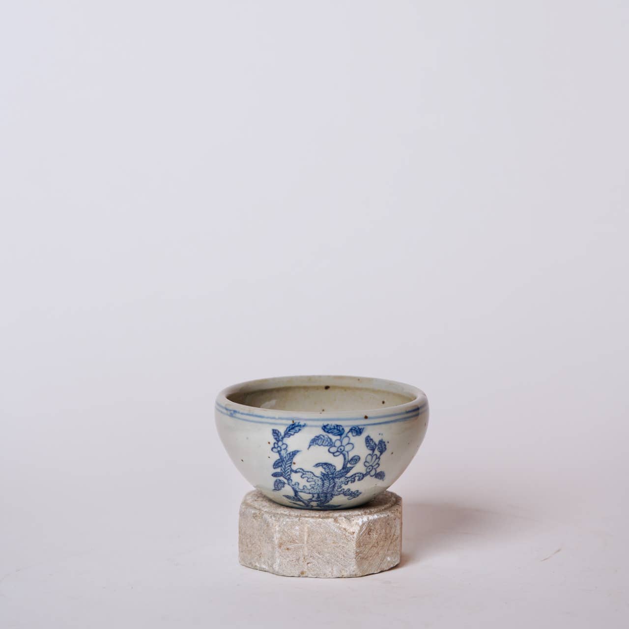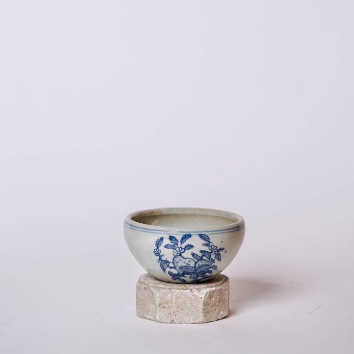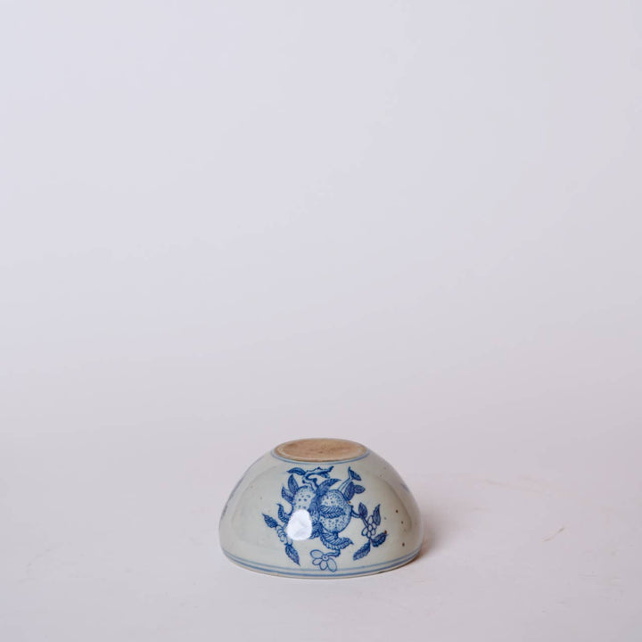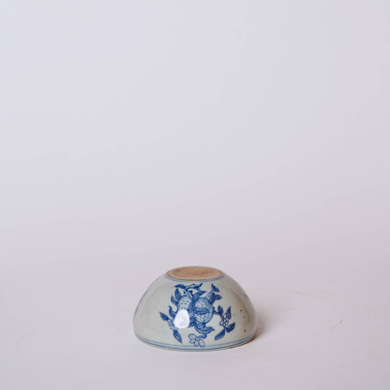 This piece is a small bowl with a carp motif in the bowl and on the sides three auspicious fruits and flowers - pomegranate, cherry, and peach.