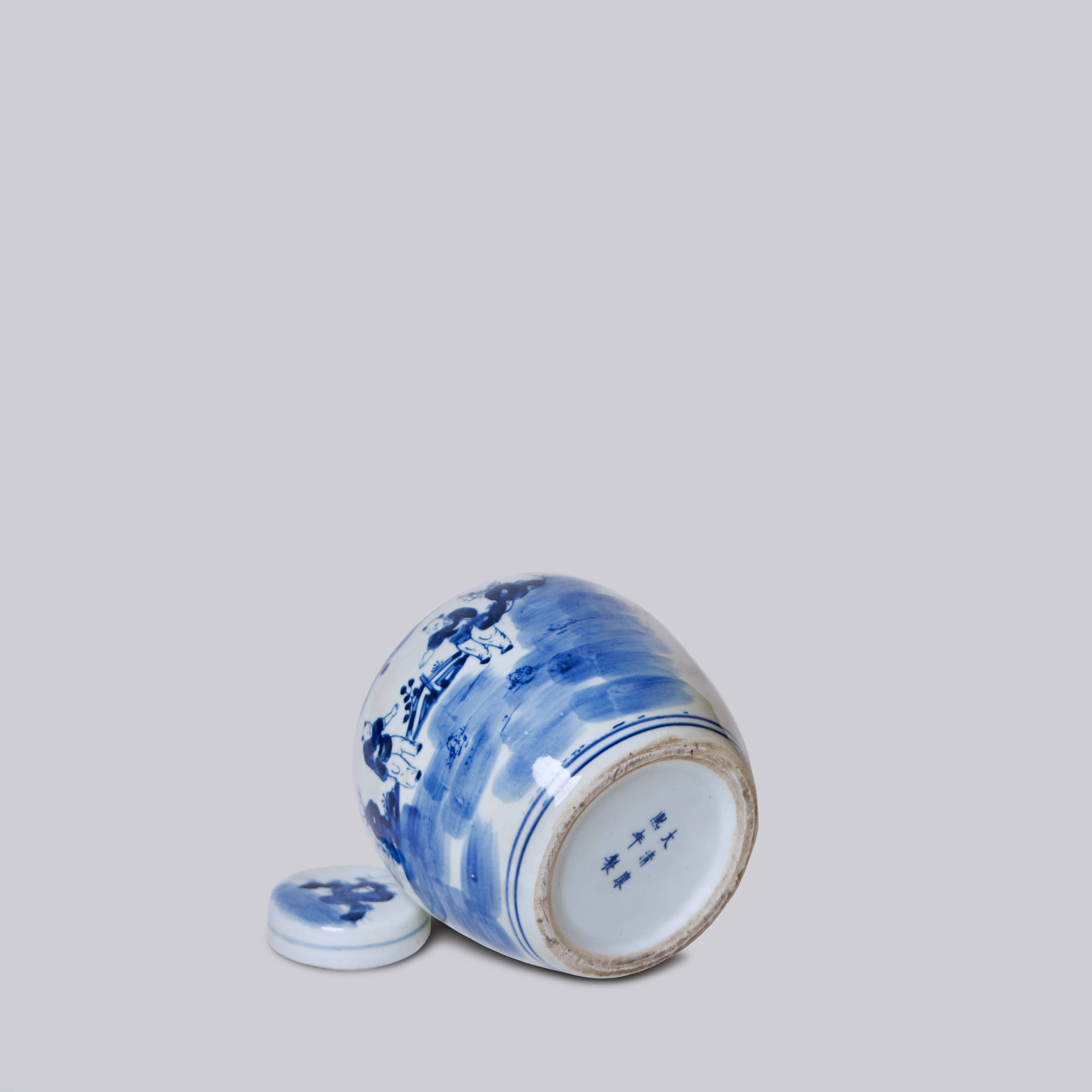 Blue and White Porcelain Playing Children Round Storage Jar
