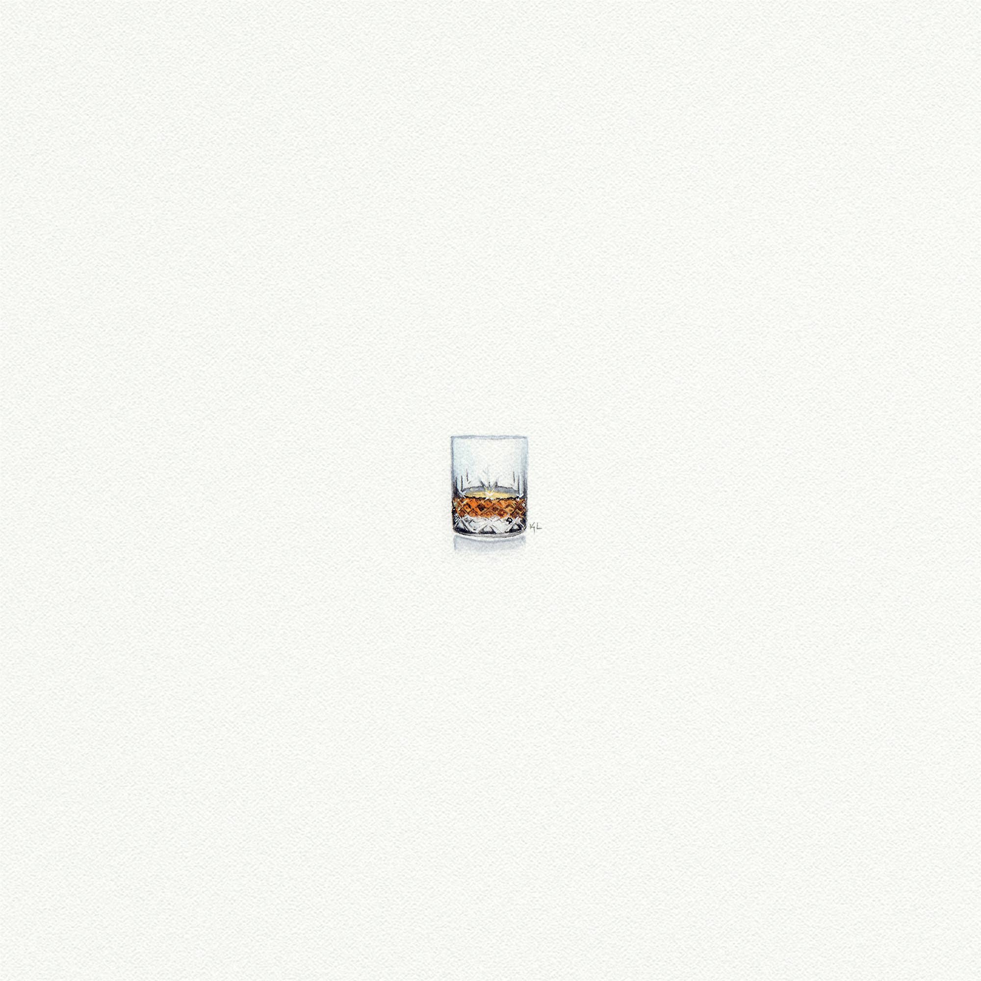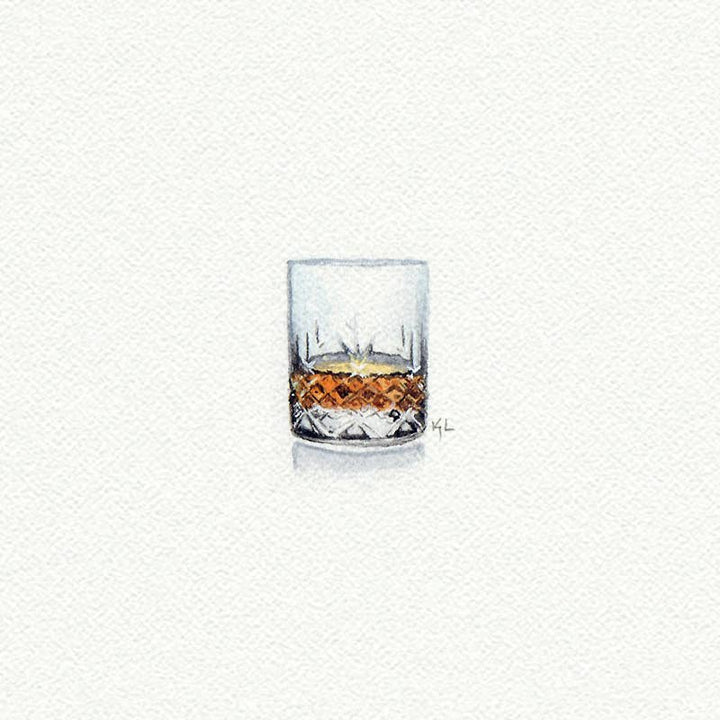 Miniature watercolor print of a bourbon/whiskey glass by artist Karen Libecap. This reproduction is digitally scanned and printed at actual size of original painting on fine art matte paper that provides vibrant color and exceptional detail using archival inks guaranteed to last 100 or more years.