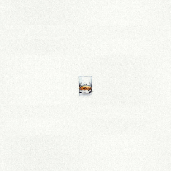 Bourbon Whiskey Glass Miniature Watercolor Painting - Print