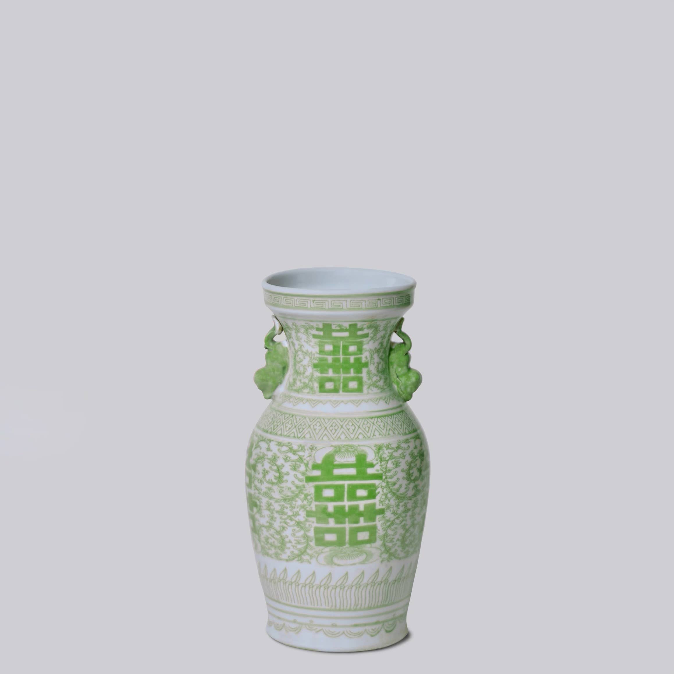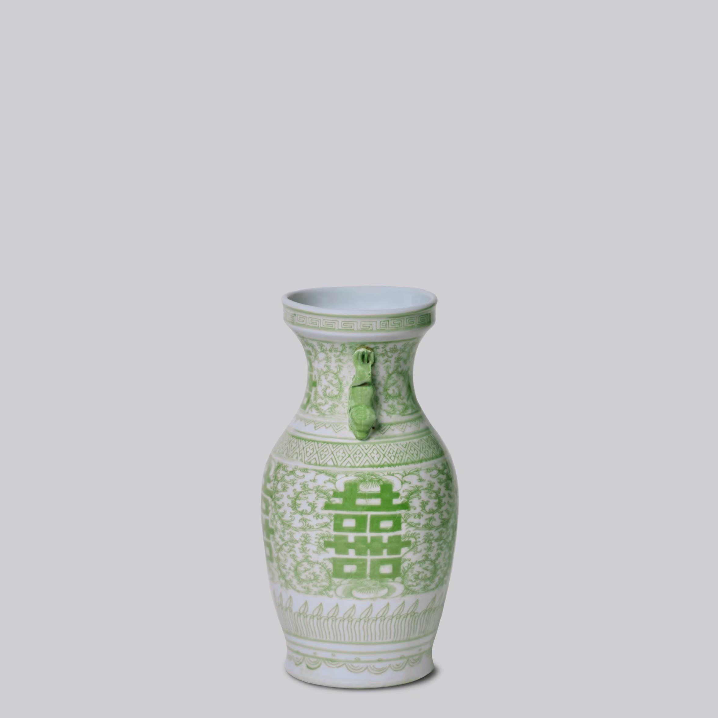 'Double Happiness' Green and White Vase