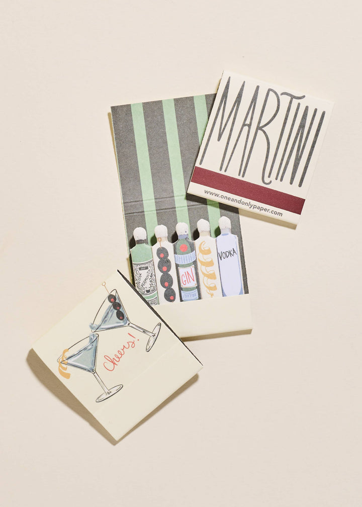 Shaken or stirred? This stylish martini matchbook is the perfect addition to your home bar or kept next to your favorite candle. Comes with 10 double-sided matchsticks.