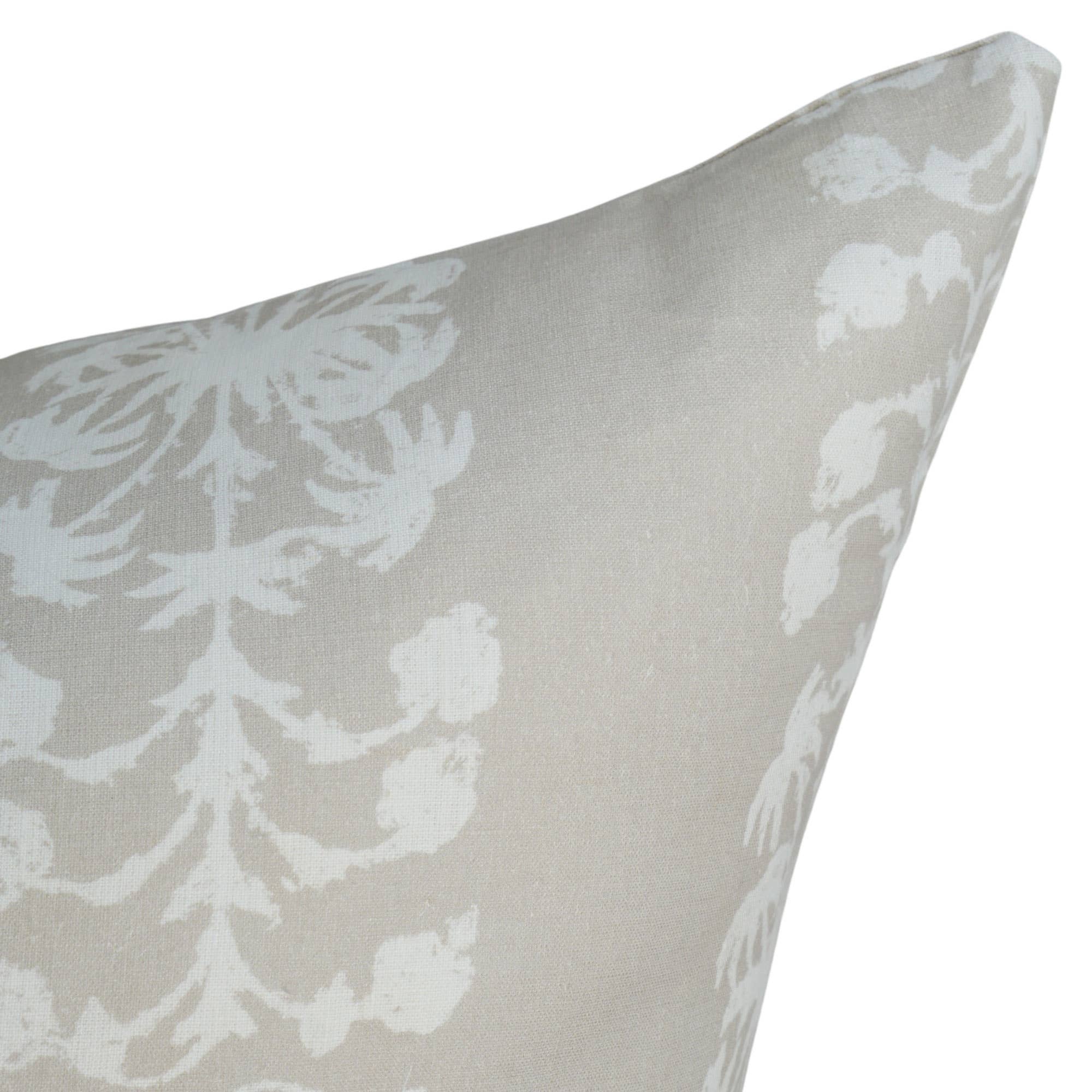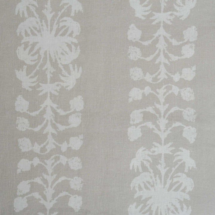Palmberry is a design inspired by the timeless beauty of leaves and the captivating allure of antique wall paintings found in the heart of India. Crafted in a textured linen fabric, this pattern is adorned with off-white intricate acanthus leaf patterns on a taupe background. It's classical elegance paired with contemporary styling.