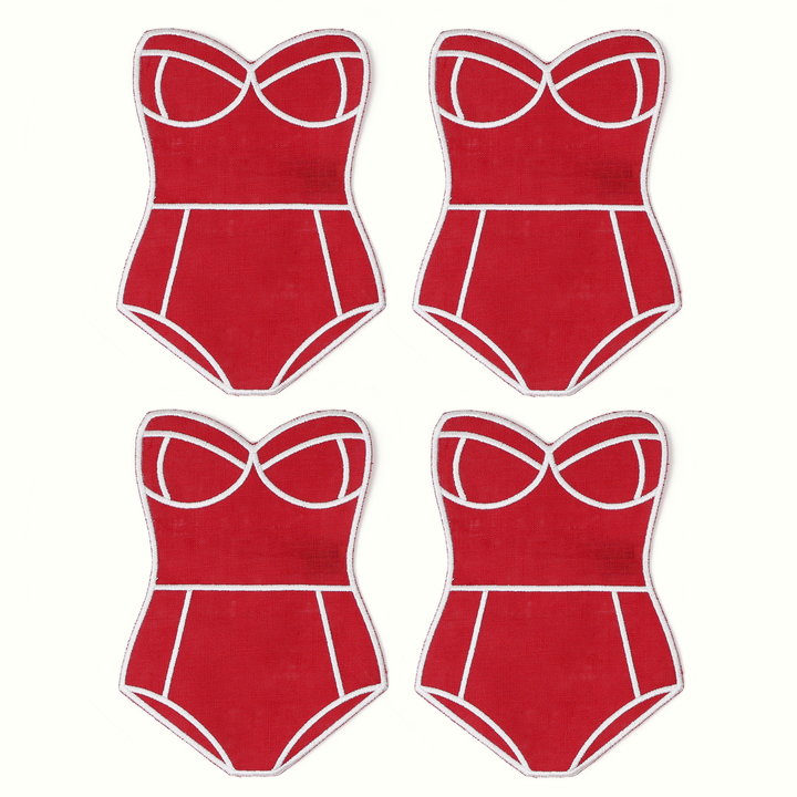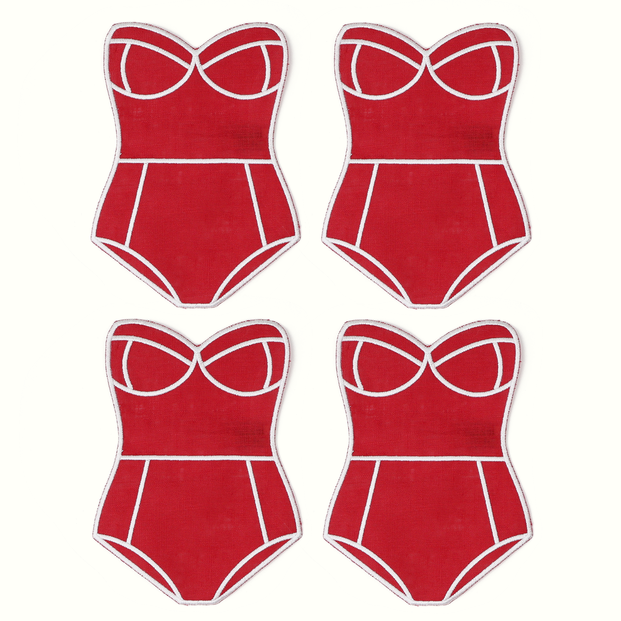 Set of 4 Red Swimsuit Cocktail Napkins. Made of OKEO-TEX certified 100% European Linen.